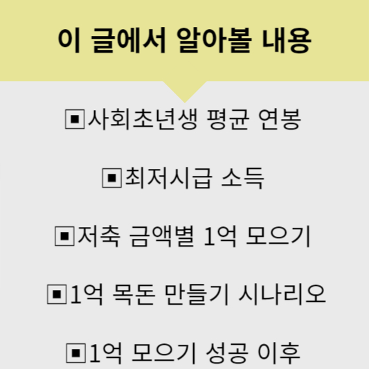 ※아래 내용을 확인하시면 사회초년생의 1억 목돈만들기 시나리오에 대해 알아보실 수 있습니다.